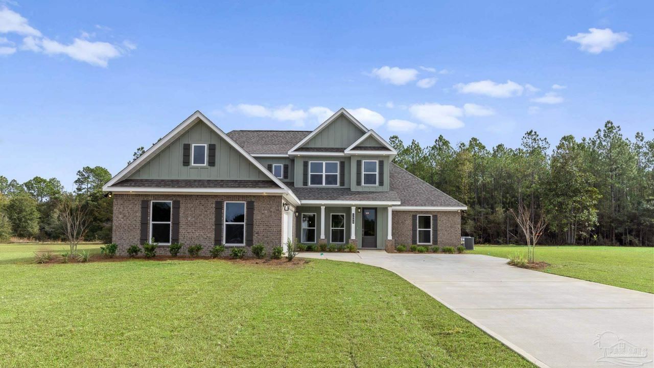 Welcome to 5888 Greenfield St! The Walnut plan is a stunning 2-story home offering 4 bedrooms, 3 bathrooms, and a 2-car garage, perfectly situated on a spacious 2-acre lot in one of Pace's most desirable and quiet locations. The open-concept kitchen is a dream with quartz countertops, beautiful cabinetry, soft-close drawers, tile backsplash, a large island, and walk-in pantry. The primary suite is a true retreat, featuring tray ceilings, a luxurious tiled walk-in shower, dual vanity, and a spacious walk-in closet. EVP flooring flows seamlessly through the main living areas and primary bedroom, while thoughtful touches like a built-in mud...read more