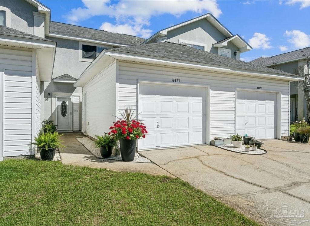 You'll love this updated 2-bedroom, 2.5-bath townhome with ensuite baths in each bedroom, located in Navarre. Freshly painted with new LVP flooring, no carpet, and a bright kitchen with new appliances. Major updates include a new roof (2022), high-efficiency HVAC with UV light (2024), water heater (2025), and garage door opener. Enjoy your fenced backyard and deck-perfect for entertaining or relaxing. Low HOA dues ($250/quarter) cover lawn care, termite bond, and sprinklers. Great location just minutes from Navarre Beach, shopping, and dining-perfect for first-time buyers or a second home!